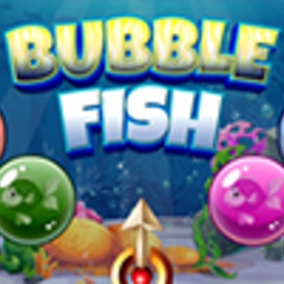 Bubble Fish is a bubble-popping game with an underwater marine life theme. Against a background of blue water filled with crabs, coral, seaweed, shells and sponges, the player completes bubble-popping tasks across numerous levels to earn points. As rows of bubbles quickly slide down the screen, they must burst clusters of three or more fish- or shell-enclosed or multi-colored bubbles with matching projectiles fired from a metal ring shooter that features a metal spearhead arrow.