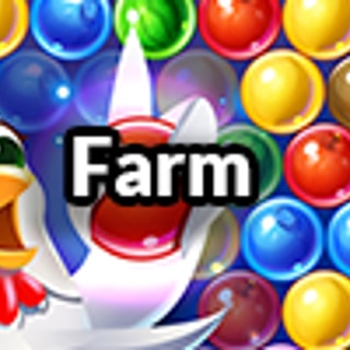 Bubble Shooter: Farm Fruit is a bubble-popping game with baby-animal rescue play. Against a desert backdrop, the player helps a chicken rescue trapped chicks in patterns of bubbles across 23 standard levels and one infinite level. They receive a score, a bonus score for combination maneuvers and unused projectiles, and up to three stars for their efforts.