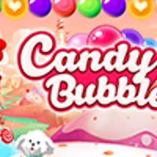Candy Bubble is a bubble-popping game set in a world made of sweet treats where a princess lives with her cute white puppy in a castle built with candy canes and other desserts. Among the ice cream hills marked by chocolate chip cookie and strawberry hard candy rocks and topiary-style red-and-white cream swirl lollipops, the player bursts candy bubbles with color-matched projectiles using a portal launcher.