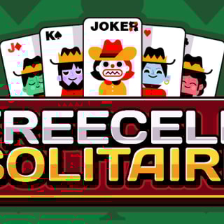 FreeCell Solitaire takes classic tabletop card play to a whole new level with a Wild West theme and modern twists. Against a green background, the player moves cards into positions to form four foundational piles in ascending A to K order. The game provides them with four free cells marked with skulls that they can use to set aside temporarily unneeded cards.